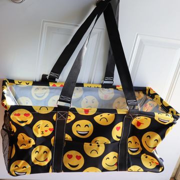 Emoji Print utility tote bag, water resistant material and collapsible for easy to store away. push down metal bars and Velcro to maintain the bag nice and sturdy.